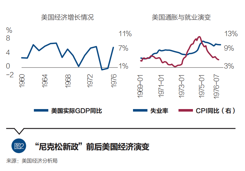 进入70年代,尼克松政府在国际与国内方面均面临严峻挑战,尤其亟须应对以美元为核心的“布雷顿森林”国际货币体系的瓦解风险。