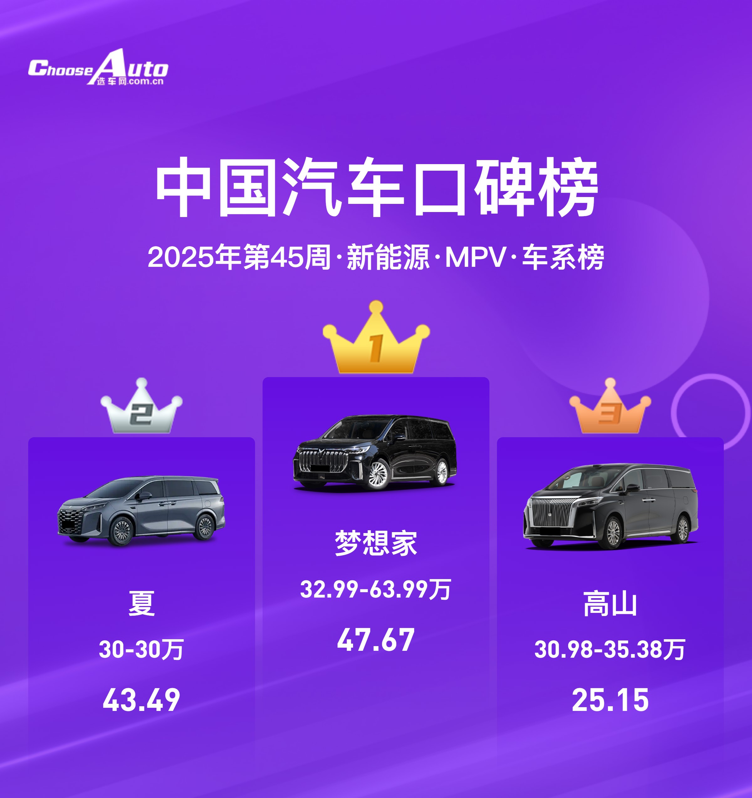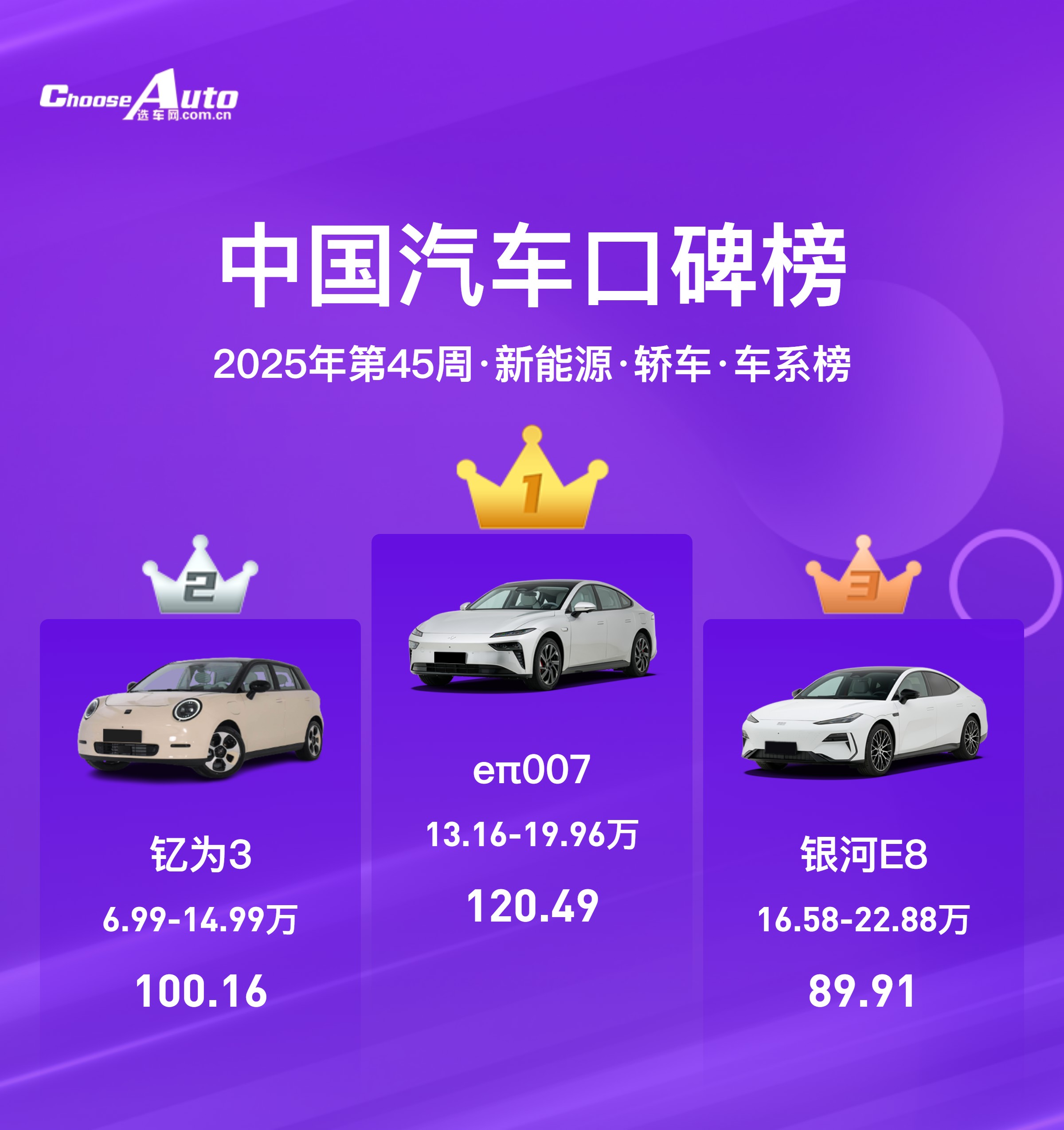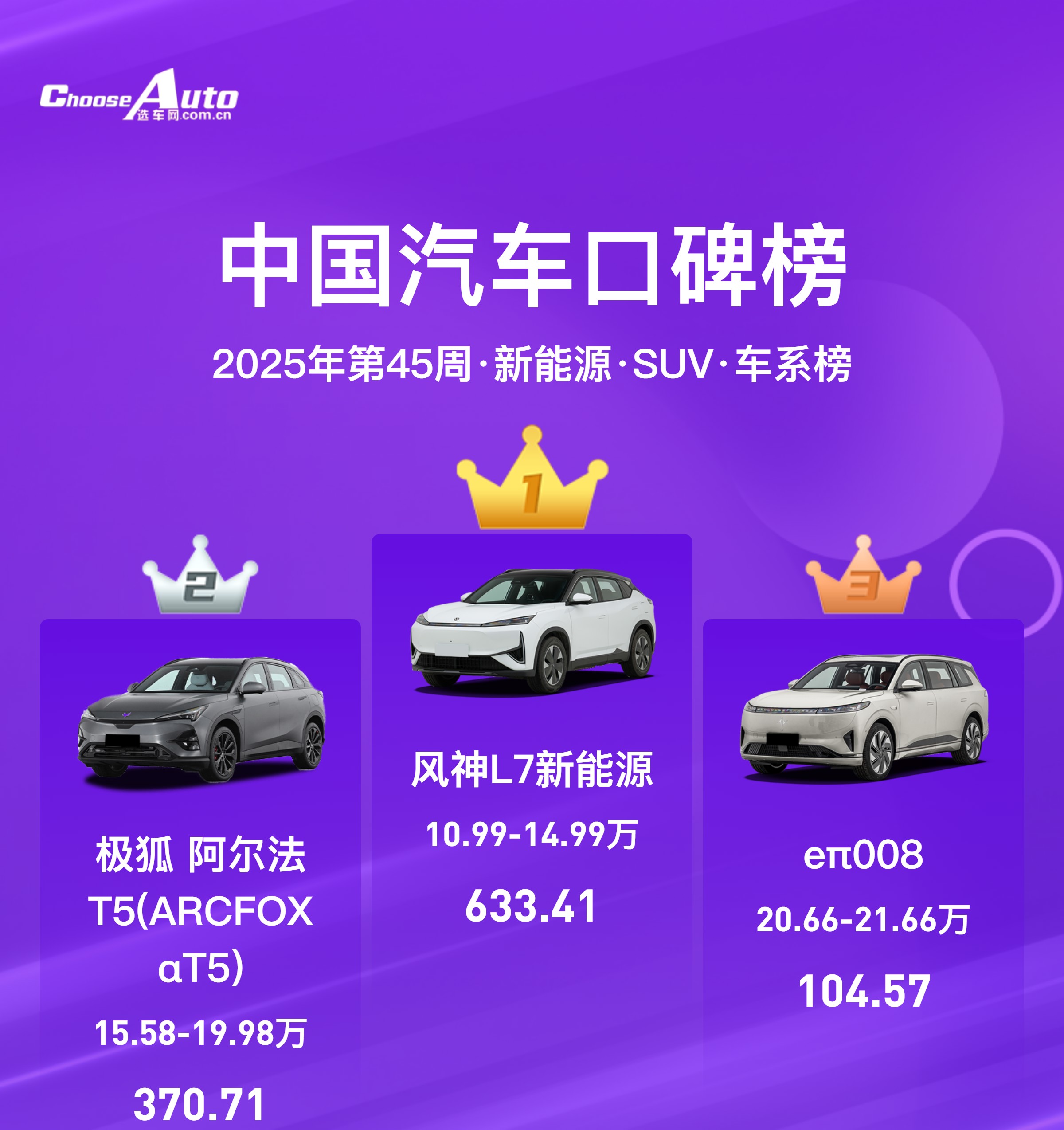 随着新能源汽车市场的不断发展,消费者对于新能源车型的关注和需求日益增长。近日,选车网发布了2025年第45周的中国汽车口碑榜,涵盖了新能源SUV、MPV和轿车三个细分市场。这份榜单不仅展示了各车型的市场表现,也为消费者提供了宝贵的购车参考。