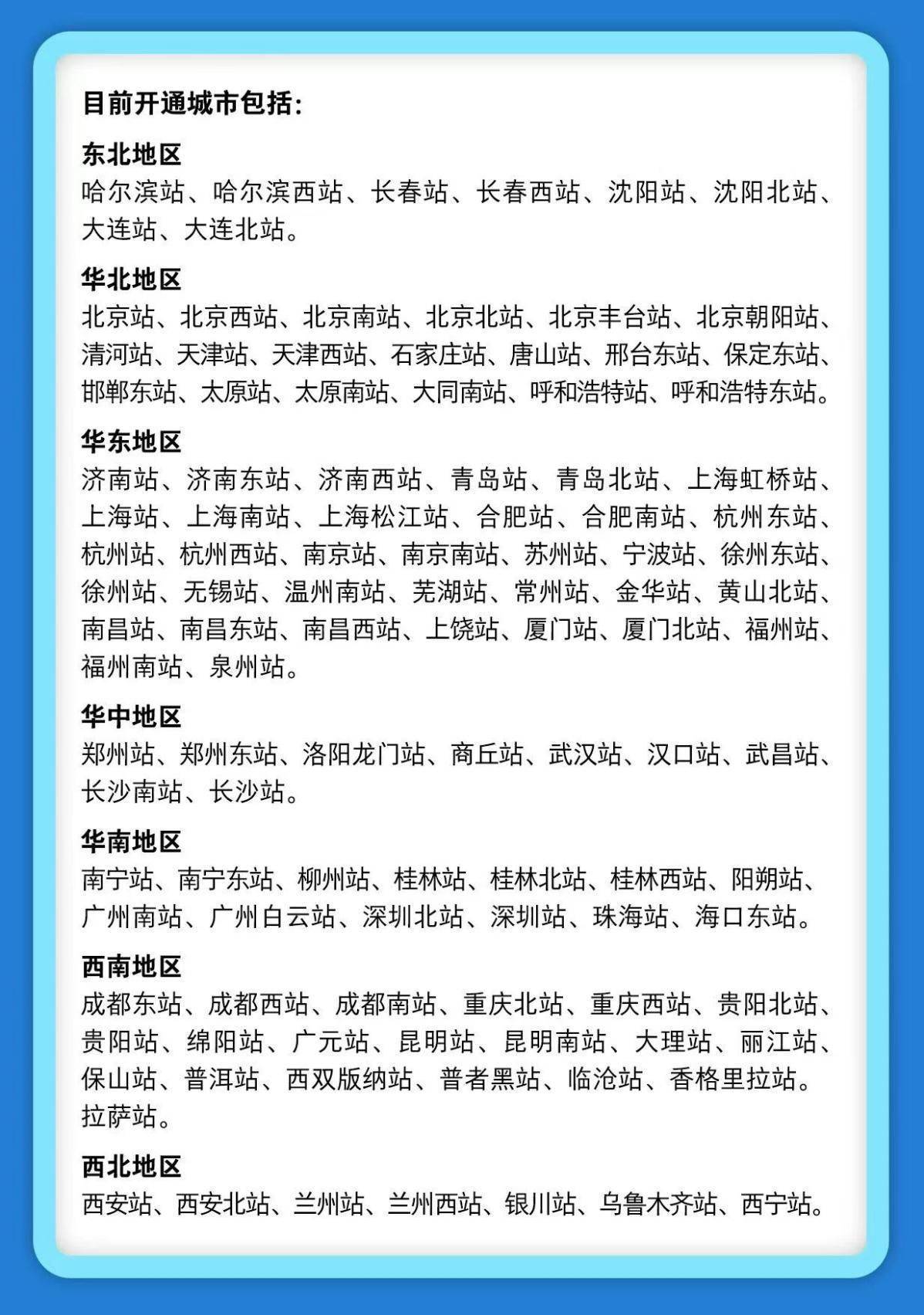 据了解,目前,宠物高铁托运服务已覆盖110个站点、170趟列车,并首次支持非购票旅客的宠物托运需求;“轻装行”服务持续扩大试点范围,基本覆盖全国省会城市、直辖市、计划单列市,车站总数达到111个。